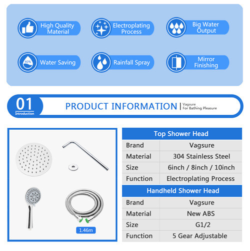 上のシャワー・ヘッドのサイズ: | 8/10/12インチ | ハンドルのシャワー・ヘッドのサイズ: | 10.6cmの直径 |