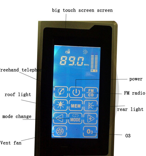 大きいLCDのタッチ画面はシャワーの小屋を流行にします。そしてそれは蒸気が小屋で鳴いてもより明確なメッセージを示すことができます。その上、そこにまた遠隔コントローラーがあります。あなたが使用したいと思うどの機能でもwhout移動を作動できます。