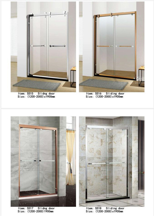このシャワーのドアのエンクロージャはフレーム、緩和されたガラス、ハンドル、ハードウェア、アクリルの石、水停止ストリップ、ドア ローラーから成っています。私達はフレームとして良質および丈夫なアルミ合金それをより安全、より安定したようにするシャワー室を支えるのに使用します。ステンレス鋼フレームはまた選びましたある場合もあります。フレームは磨かれています、色カスタマイズすることができます黒くします、ばら色の金、ミラー、スライバ、等。