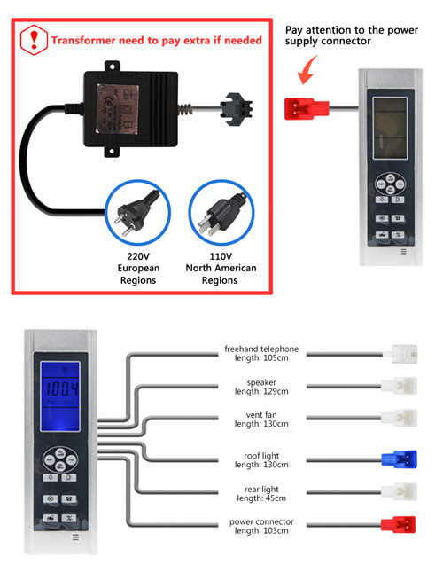 このコントロール パネルの評価された電圧は省エネACだけ12Vで、広く利用されます。操作インターフェイスは主に押すことを、敏感な反作用反映します速い応答を使用します。表面のキーは出口ファン、屋根ライト、FMのラジオ、頻度調整、手で描いた電話、拡声器、声および上り制御が含まれています。 関連の付属品が出口ファン、屋根および後部ライトであるように、スピーカー。Whatはより多くの変圧器必要とすれば提供されます。そして機能は静かな多様です。