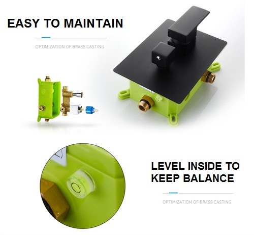 この隠されたシャワーのコック セットはこの頃は普及しています。それは簡単な生命がほしいと思うシャワー室を取付ける大いにより多くの場所がありません人のためのよい選択であり。前埋め込まれた弁によって、上のシャワー・ヘッドを取付けることは容易で水栓の下でシャワーのホールダーをおよび渡します。パネルかスライド バーなしで、それはスペース節約です。それは塗られる黒与えます簡単なnormcoreの世帯の装飾のために適した優雅な一見をです。