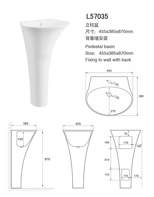 1. 洗面器は手、表面、等を洗浄するために普通使用されます。このタイプは多孔性無しに一つの台洗面器です。支えがないタイプはそれに取付けること容易なスペース節約をよい換気します。調和した一見、台で隠される排水設備一見はきれいになり、片付けます。設備十字のためにsetted穴。