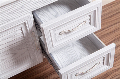この1つは壁に取り付けられた浴室の虚栄心のキャビネット、含んでいます主要なキャビネット、陶磁器の洗面器をでありミラーのキャビネット、専門技術およびスペース節約なしに取付けることは容易です。ミラーのフレームおよびキャビネットは同じ木の穀物の表面処理、古典的な、流行一見を使用します。キャビネットの材料は強く、非変形のアルミ合金です。洗面器によっての使用される良質の陶磁器の、艶をかけられた表面は土と付くことを困難に細菌の成長を避けるためにします。テーブル板の単一の楕円形の流しは、他の場所洗面用品を置くことができます。滑らかな表面はまたきれいになることも容易にします。時が開いたコックをingored流出の穴が付いている洗面器は、水流し、避けます水無駄になることを流出しません。主要なキャビネットは1つのドアおよび2つの引出しを備えています。大きい記憶空間は貯えるためによりよくスペースを割振り。付属品はステンレス鋼、耐久財および反錆です。柔らかく近い蝶番は、切り分けられたハンドル ドアを作り、引出しはslientlyそして容易に開閉しましたり。そしてミラーのキャビネットについて、置くか、または貯えることのためのミラーの側の棚がだけでなく、あります。ドアとしてミラーが、およびまた、そこにミラーの後ろの記憶空間を備えているので。それはスペースを非常に節約し、キャビネットの一見をきれいおよび端正にさせます。
